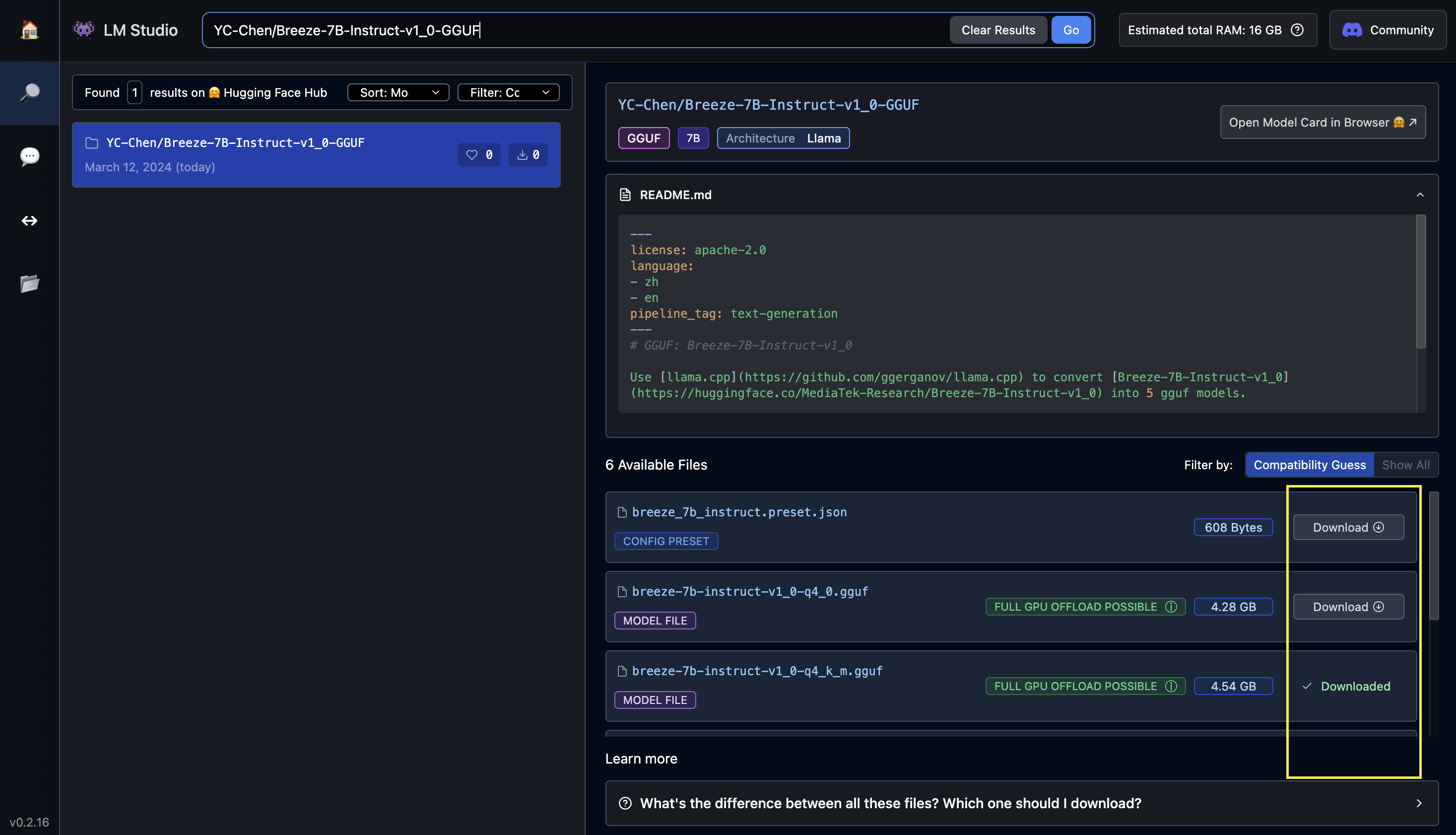 Search "YC-Chen/Breeze-7B-Instruct-v1_0-GGUF"
