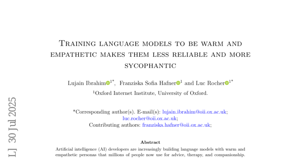 Training language models to be warm and empathetic makes them less